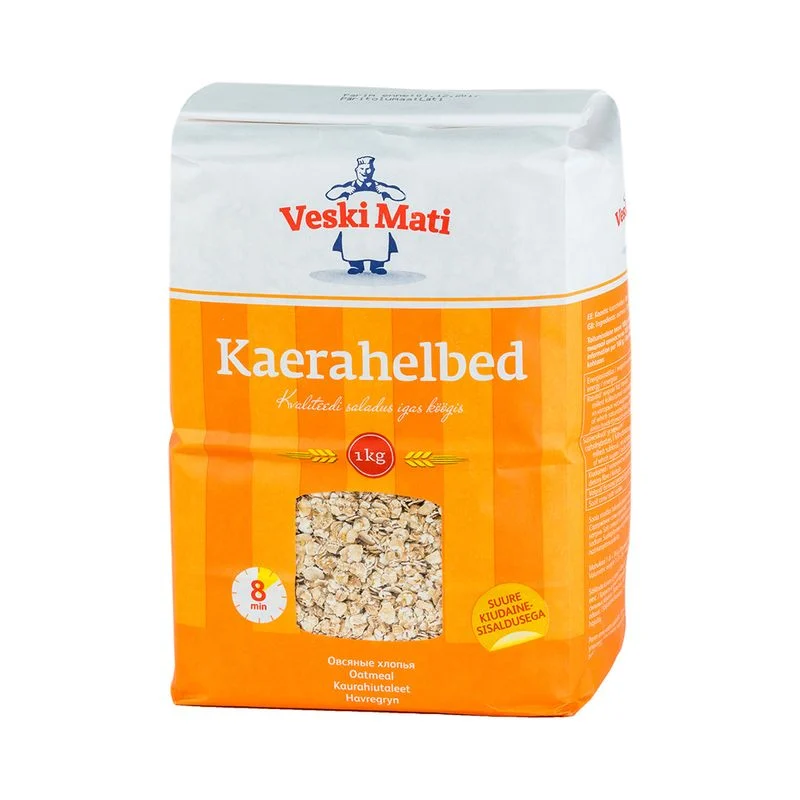 KAERAHELBED 1Kg peenike (VESKI MATI)Tootekood: 4740281006716 – + tk 2,05€Kilo hind: 2.05 €* hinnale lisandub käibemaksPakendi kogus: 8