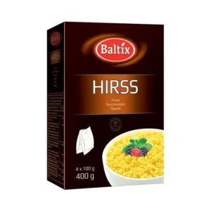 HIRSIHELBED 500G( BALTIX)Tootekood: 4742298000695 – + tk 1,00€Kilo hind: 2.00 €* hinnale lisandub käibemaksPakendi kogus: 12
