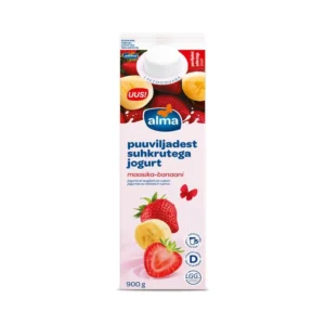 JOGURT MAASIKA-BANAANI PUUVILJADEST SUHKRUGA 900GR (ALMA)Tootekood: 4740125525311 – + tk 1,74€* hinnale lisandub käibemaks