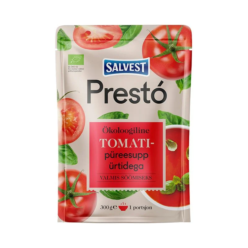 SALVEST PRESTO TOMATIPÜREESUPP ÜRTIDEGA 300GRTootekood: 4740073073780 – + tk 2,10€* hinnale lisandub käibemaksPakendi kogus: 5