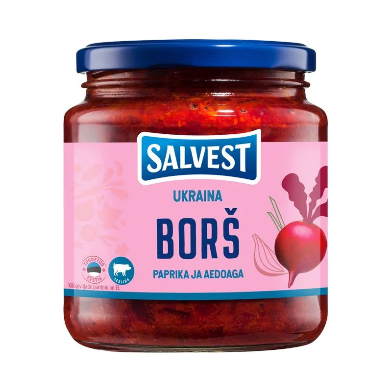 SALVEST UKRAINA BORSH 530GrTootekood: 4740073040478 – + tk 2,50€Kilo hind: 4.72 €* hinnale lisandub käibemaksPakendi kogus: 8